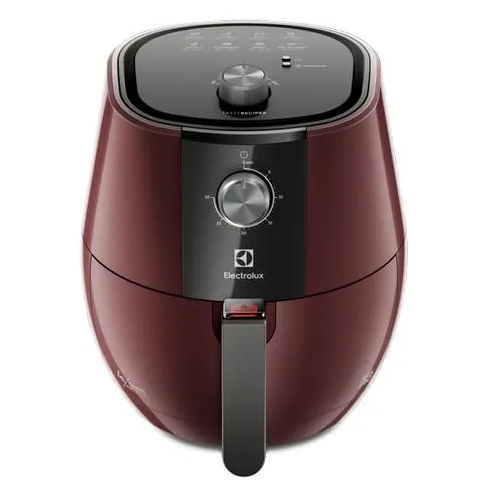 A Air Fryer Electrolux por Rita Lobo 4L (EAF31) foi desenvolvida para quem busca praticidade, sabor e uma alimentação mais saudável no dia a dia. Com design moderno na cor vermelha escura, ela combina estilo e eficiência para sua cozinha. Sua capacidade de 4 litros permite preparar porções ideais para famílias pequenas ou casais, garantindo alimentos crocantes por fora e macios por dentro utilizando pouco ou nenhum óleo.