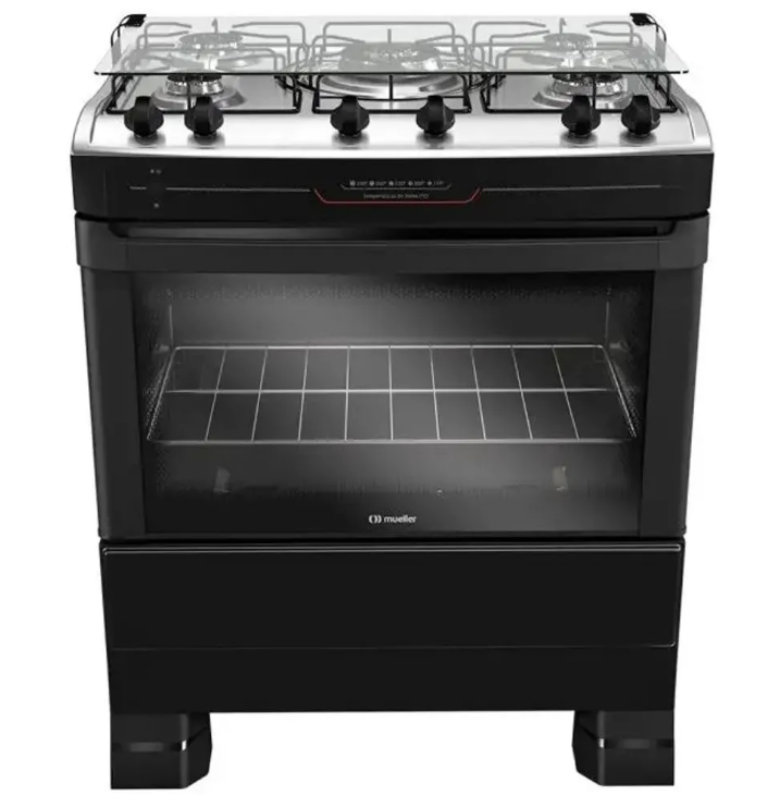 O Fogão Mueller MFI5BF é um modelo de 5 bocas com acendimento automático, ideal para quem busca praticidade, eficiência e segurança na cozinha. Ele possui um queimador central Tripla Chama de alta potência, dois queimadores Família, um queimador médio e um queimador no forno, garantindo rapidez e versatilidade no preparo das refeições.