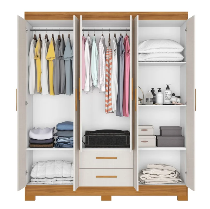 O Guarda-roupa NT 5130 é uma opção funcional e elegante para organizar o seu quarto com praticidade. Com 6 portas e 2 gavetas, oferece amplo espaço interno distribuído em prateleiras, cabideiro resistente e gavetas com corrediças metálicas, ideais para acomodar roupas, acessórios e objetos pessoais. Fabricado em MDP de alta qualidade com acabamento em pintura UV, garante durabilidade, resistência e um visual sofisticado. Disponível em combinações de cores modernas, harmoniza facilmente com diferentes estilos de decoração, proporcionando beleza e organização ao ambiente.