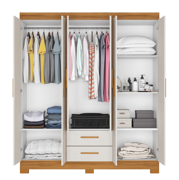 Com 6 portas e 2 gavetas espaçosas, o NT5130 oferece amplo espaço interno para guardar roupas, calçados e acessórios com praticidade. Seu interior é bem planejado, com cabideiro metálico resistente, prateleiras amplas e gavetas com corrediças metálicas, que garantem suavidade e durabilidade no uso diário.