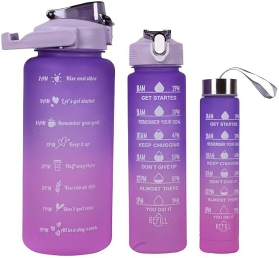 O Kit Garrafa Colorida Motivacional Squeeze – 03 Peças é perfeito para quem deseja se hidratar com estilo e praticidade. Com frases motivacionais e marcações de horários, ele ajuda a acompanhar o consumo de água ao longo do dia. Produzidas em material resistente e leve, são fáceis de transportar, ideais para academia, trabalho, escola ou atividades ao ar livre. Além de funcionais, as cores vibrantes trazem mais alegria para sua rotina de hidratação.