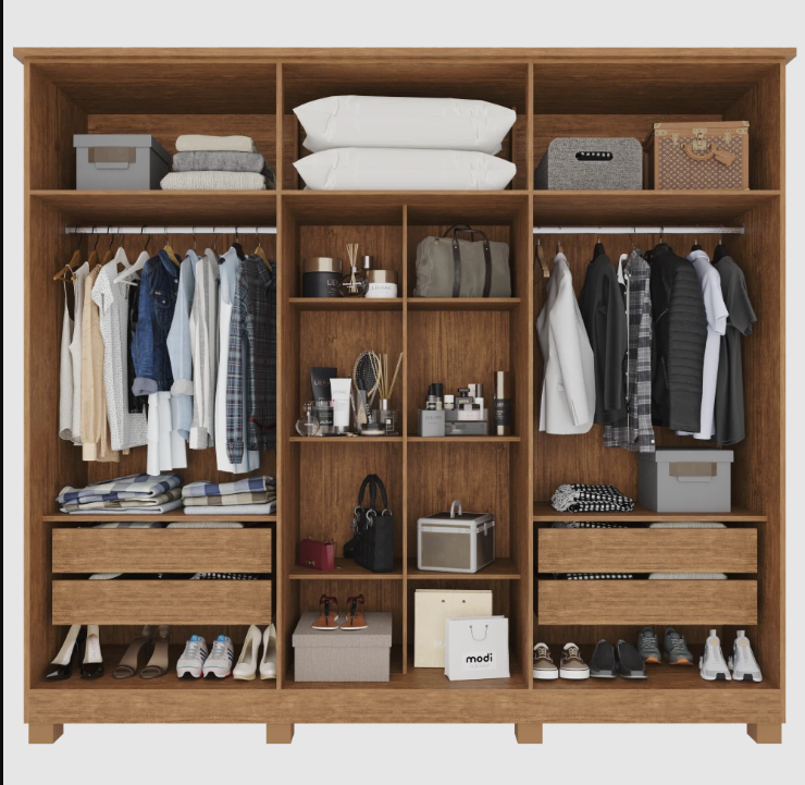 O Guarda-Roupa IMOP Antares 6 Portas Prime une sofisticação e funcionalidade para transformar o seu quarto. Com um elegante acabamento nas cores Cinamomo e Off White, ele valoriza a decoração e proporciona um toque moderno ao ambiente. Seu espaço interno é amplo e bem planejado, contando com prateleiras espaçosas, cabideiros resistentes e gavetas internas que facilitam a organização de roupas, calçados e acessórios. Produzido em MDP de alta qualidade e com pintura UV, garante resistência, durabilidade e beleza por muito mais tempo. Ideal para quem busca praticidade sem abrir mão do design sofisticado.